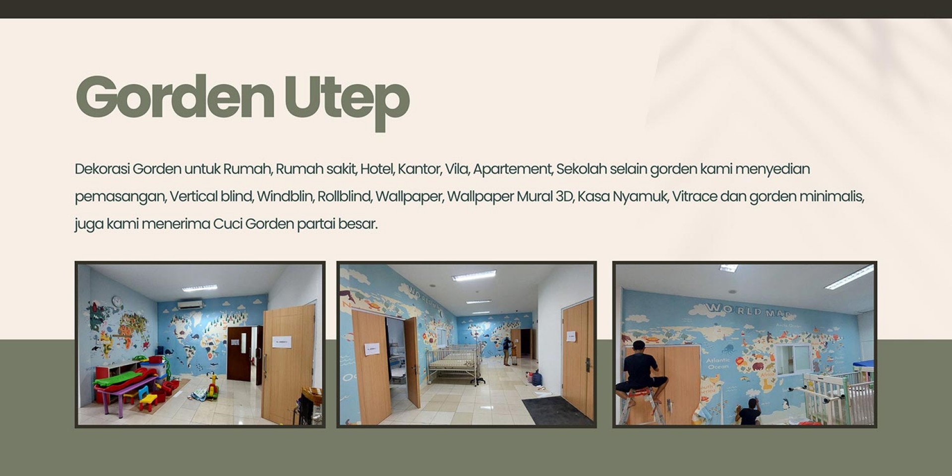 Read MoreKami merintis sejak tahun 1993 adalah usaha turun temurun awal menjajak dari door to door yang mengutamakan kwalitas untuk menanamkan kepercayaan kepada konsumen hingga sekarang dengan perkembangan mengikuti jaman kami menyesuaikannya dan menyesuaikan kebutuhan konsumen agar, dari Jawabarat hingga Nasional, dengan mengutamakan pelayanan dan kwalitas hingga kini kami masih exsis memnuhi kebutuhan konsumen, dari kebutuhan hanya gorden sehingga dengan adanya perkembangan jaman kebutuhan konsumen, verticalblind, Vinyl lantai, Gorden untuk rumahsakit yang anti bakteri, rollblin, wallpaper, mural 3d,merambah memenuhi kebutuhan konsumen.